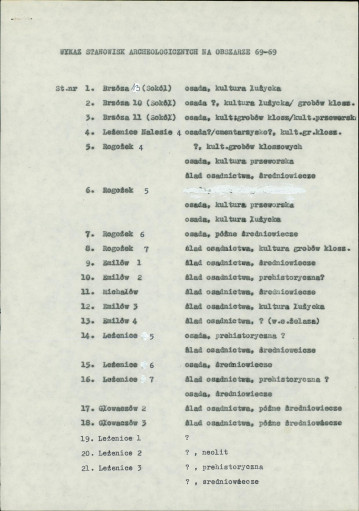 spis stanowisk wg numerów na obszarze