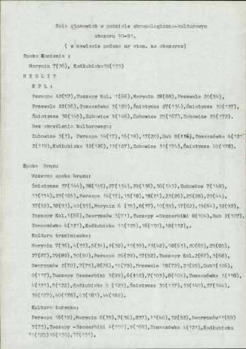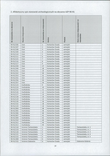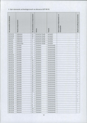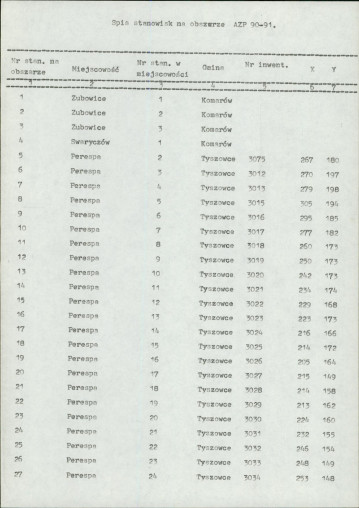 spis stanowisk wg numerów na obszarze