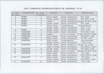spis stanowisk wg numerów na obszarze