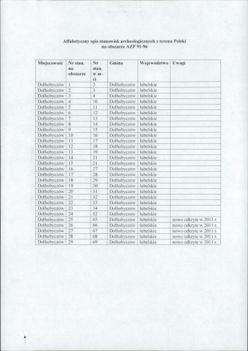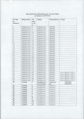 spis stanowisk wg numerów na obszarze