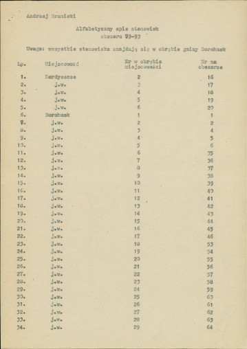 spis stanowisk wg numerów na obszarze