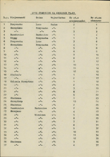 spis stanowisk wg numerów na obszarze