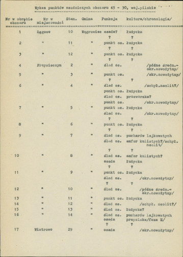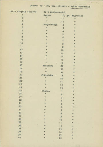 spis stanowisk wg numerów na obszarze