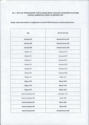 spis stanowisk, których numeracja uległa zmianie