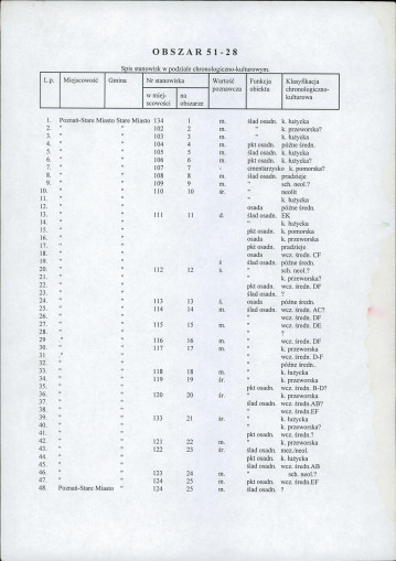 spis stanowisk wg numerów na obszarze
