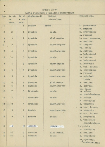 spis stanowisk wg numerów na obszarze