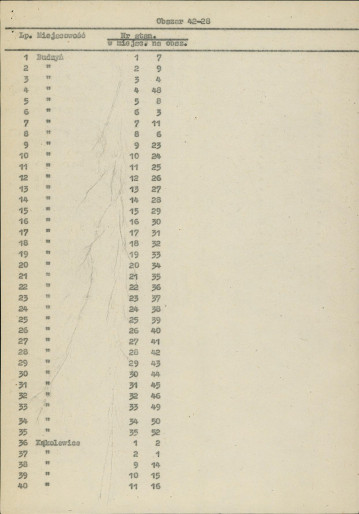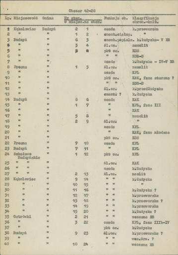 spis stanowisk wg numerów na obszarze