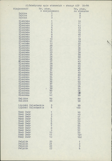 nob - spis stanowisk wg numerów na obszarze