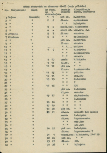 spis stanowisk wg numerów na obszarze