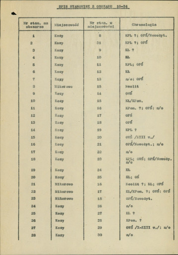 nob - spis stanowisk wg numerów na obszarze