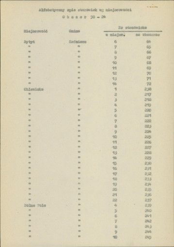 spis stanowisk wg numerów na obszarze
