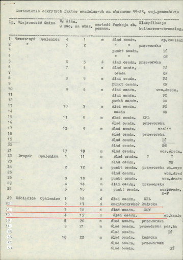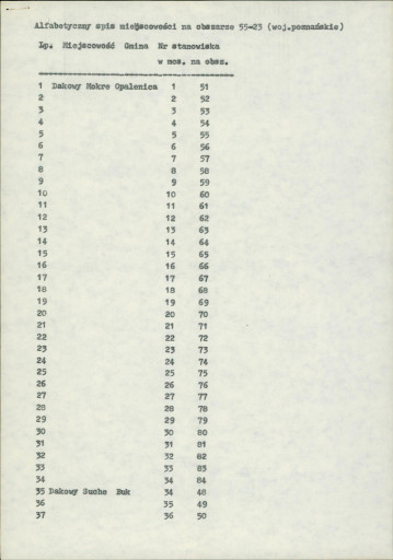 spis stanowisk wg numerów na obszarze