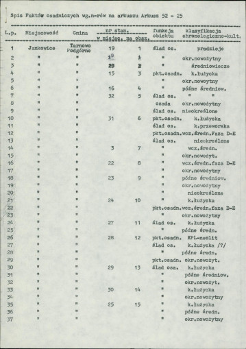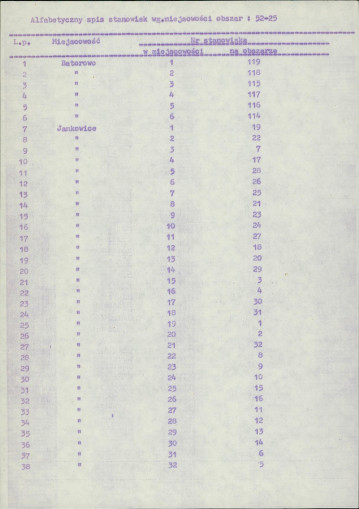 spis stanowisk wg numerów na obszarze