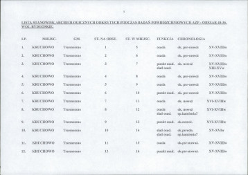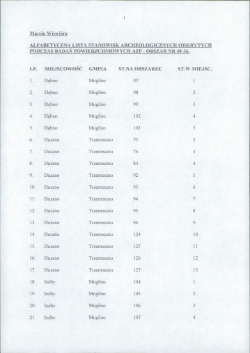 spis stanowisk wg numerów na obszarze