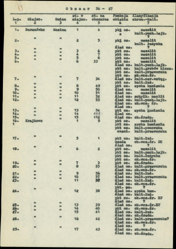 spis stanowisk wg numerów na obszarze