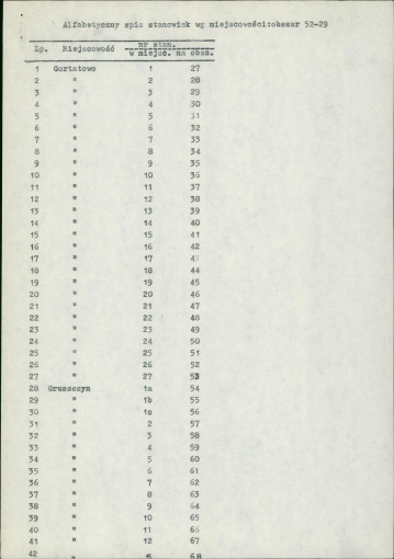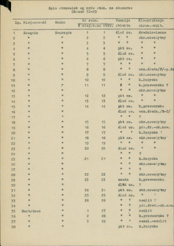 spis stanowisk wg numerów na obszarze