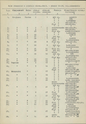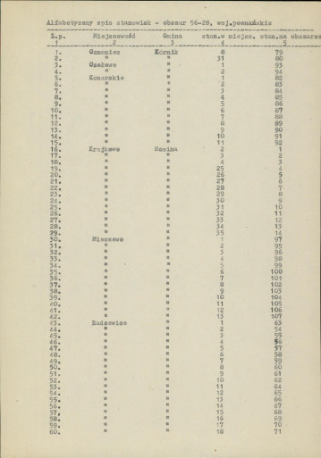 spis stanowisk wg numerów na obszarze