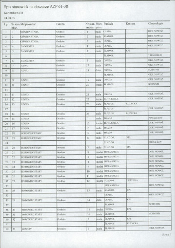 spis stanowisk wg numerów na obszarze