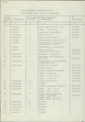 spis stanowisk wg numerów na obszarze