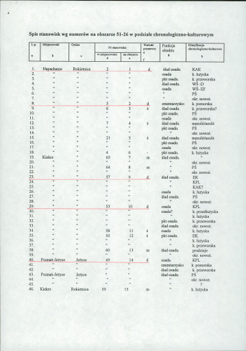 spis stanowisk wg numerów na obszarze