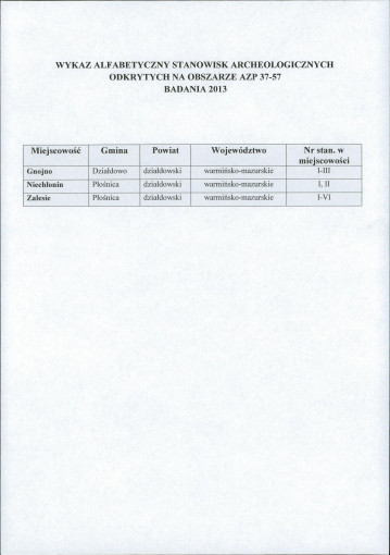 spis stanowisk wg numerów na obszarze