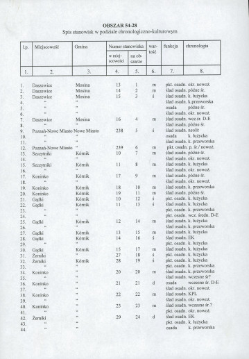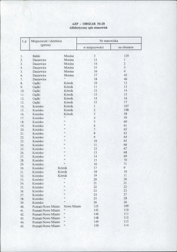 spis stanowisk wg numerów na obszarze