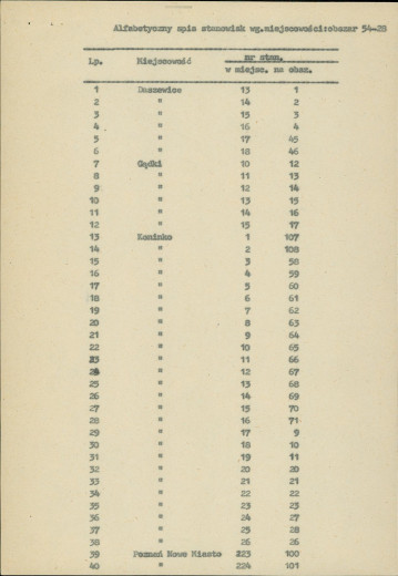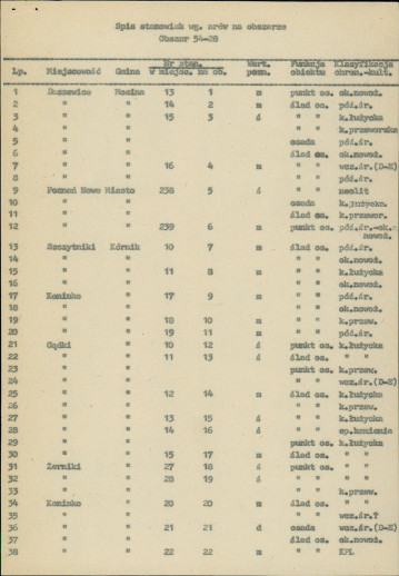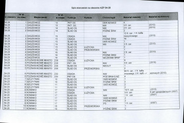 spis stanowisk wg numerów na obszarze