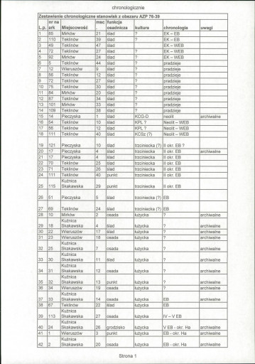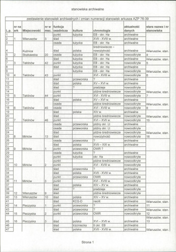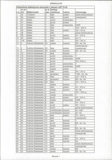 spis stanowisk wg numerów na obszarze